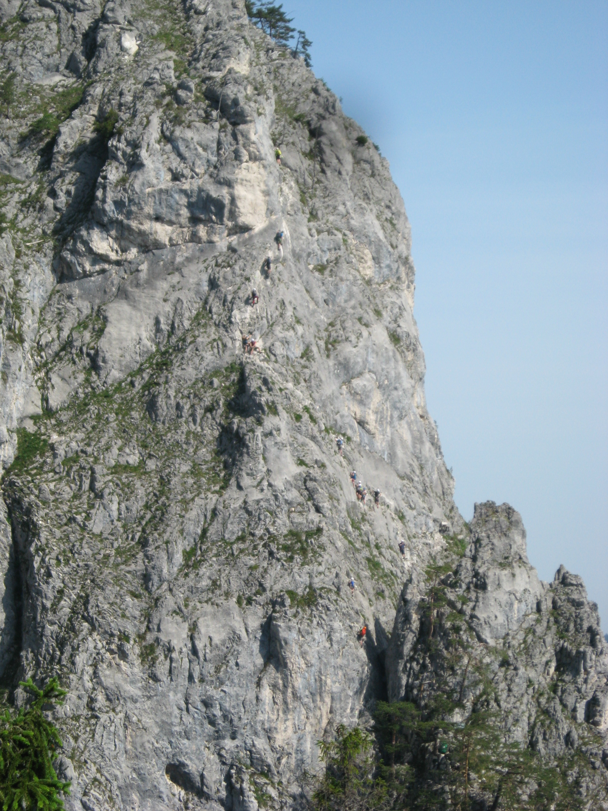 Blick vom Abstieg auf den interessanten Teil des Klettersteiges.